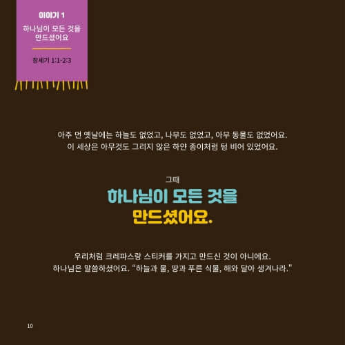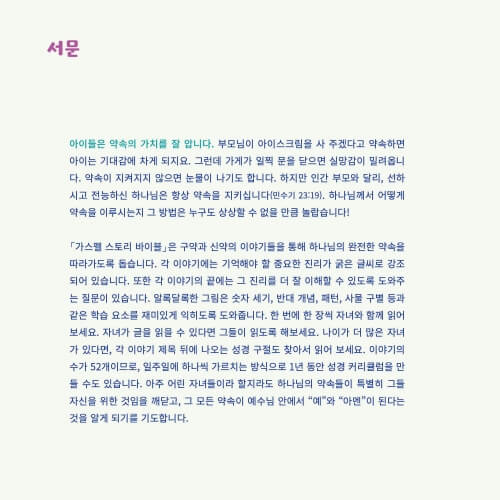 하나님의 성품과 복음의 진리를 아이들이 이해하기 쉽게 알려 줍니다.