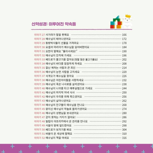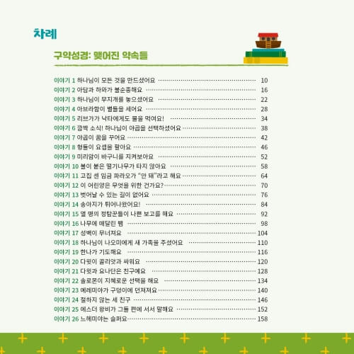 나이가 더 많은 자녀가 있다면, 각 이야기 제목 뒤에 나오는 성경 구절도 찾아서 읽어 보세요.