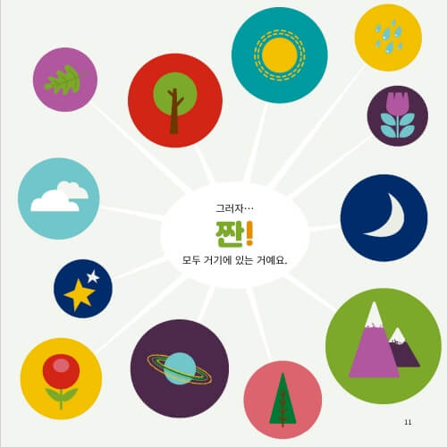 밝고 선명한 일러스트와 핵심적인 메시지로