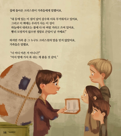 주인공 '크리스천'이 등에 진 무거운 죄의 짐을 벗기 위해 '멸망의 성'을 떠나 '하늘성'으로 향하는 믿음의 여정은, 우리 아이들이 세상 속에서 마주할 유혹과 시련, 그리고 승리를 생생하게 보여 주는 ‘영적 알레고리’입니다.