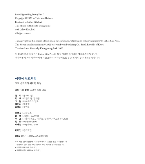 지금까지 『천로역정』이 수많은 그리스도인에게 영감을 주었듯이, 이 책을 통해 많은 어린이 순례자들이 하늘나라를 향한 여정을 시작하는 데 도움 얻기를 소망합니다.