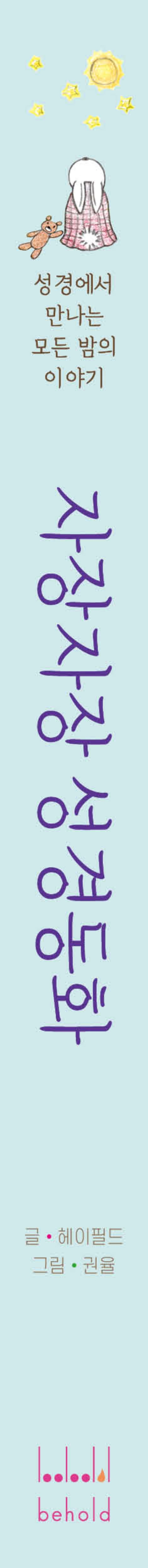 「자장자장 성경동화」는 죄의 문제에서부터 다시 오실 참 빛이신 예수님에 이르기까지, 복음의 핵심을 아이들의 마음 밭에 차근차근 심어줍니다. 또한 아이들이 성경동화를 행복한 마음으로 듣는 가운데 회개, 구원, 복음, 전도 등 반드시 알아야 할 성경 용어를 자연스레 익히도록 돕습니다. 나아가 스스로 묵상하는 힘을 길러줌으로써, 아이들이 말씀에 순종하며 천국을 향해 씩씩하게 나아갈 수 있도록 인도합니다. 특히, 밤을 무서워하는 아이들에게는 온 세상을 다스리시는 하나님께서 언제나 곁에서 지키신다는 진리를 일깨워 주어, 두려움을 평안으로 바꾸고 주님 안에서 가장 행복한 잠자리를 누리게 합니다.