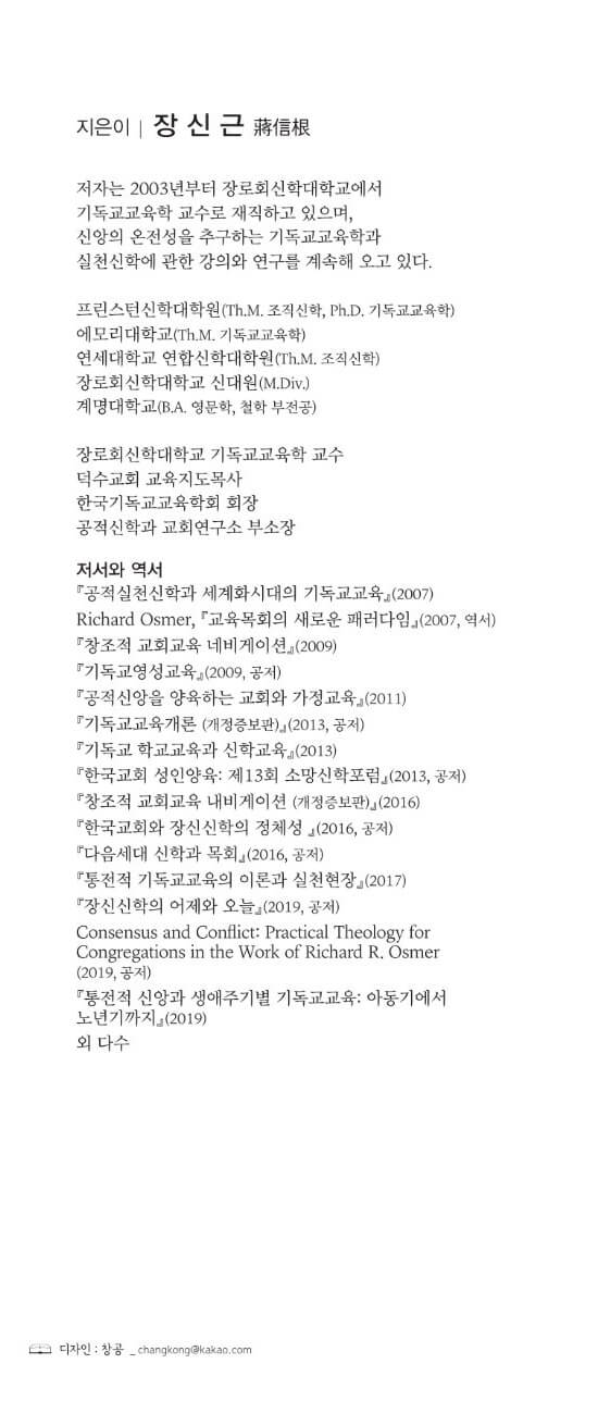 이 책은 필자가 “실천신학으로서의 기독교교육학”에 대하여 지속적으로 관심을 기울여온 지난 시간의 작은 결실이다. 공적실천신학을 다룬 박사학위 논문에서 시작하여 장로회신학대학교에서 20여년 가르치는 동안 기독교교육학과 실천신학에 관한 연구를 계속 이어왔는데, 이 책은 실천신학 연구 여정의 결론에 해당한다고 할 수 있다. 필자는 이 책을 통하여 실천신학의 다양한 유형을 논의하는 과정에서 해외 실천신학자들 뿐 아니라, 한국 실천신학자들과 목회자를 다양하게 포함시키려고 의도적으로 노력하였다.