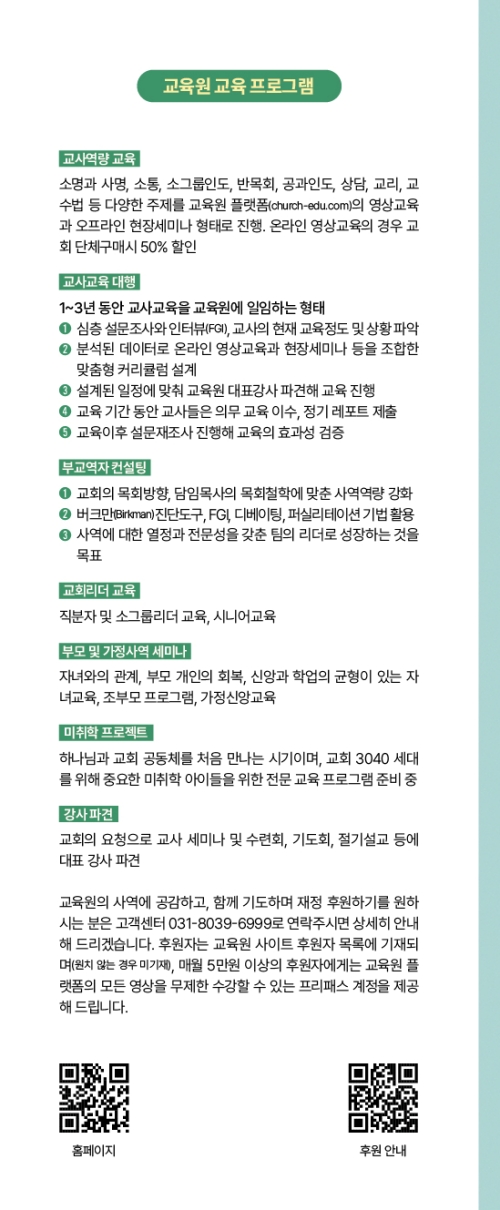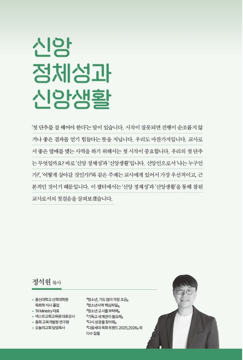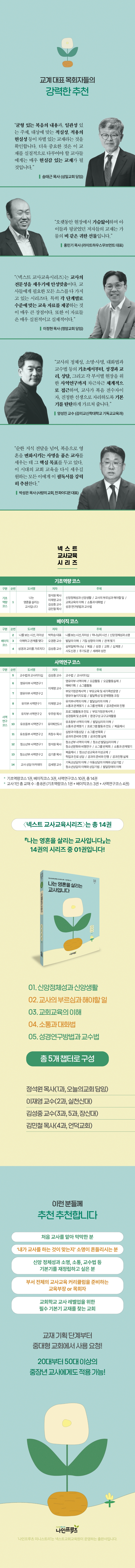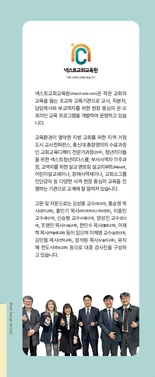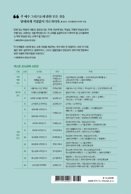 목회의 현장에서 교사 교육의 필요성을 절감하면서도 늘 안타까웠던 것은 학생을 위한 교재가 아니라, 교사 훈련을 위한 교재가 빈약하다는 것입니다. 이런 현실 앞에 넥스트교회교육원에서 교사 교육 교재를 발간하게 된 것이 고맙고도 반갑습니다.