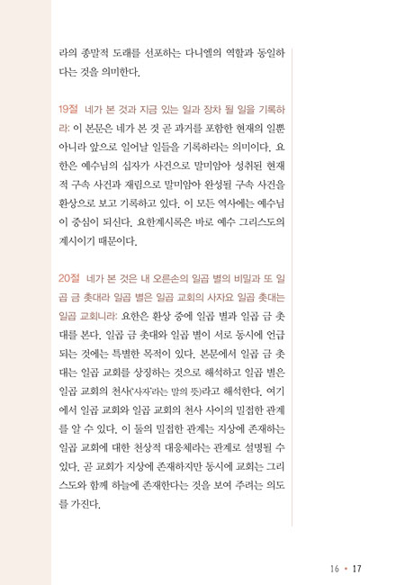 이런 여러 가지 이유로 요한계시록은 교회 안에서 이해하기 어려운 책 또는 이단들이 악용하기 쉬운 책, 그래서 설교 되지 않는 책이었다. 하지만 요한계시록에서 무지와 오해의 안개를 걷어내고 나면 그 안에는 교회를 향한 그리스도의 풍성한 위로와 신원이 그리고 영광스럽게 완성될 하나님 나라의 기쁜 소식이 가득 차있다.