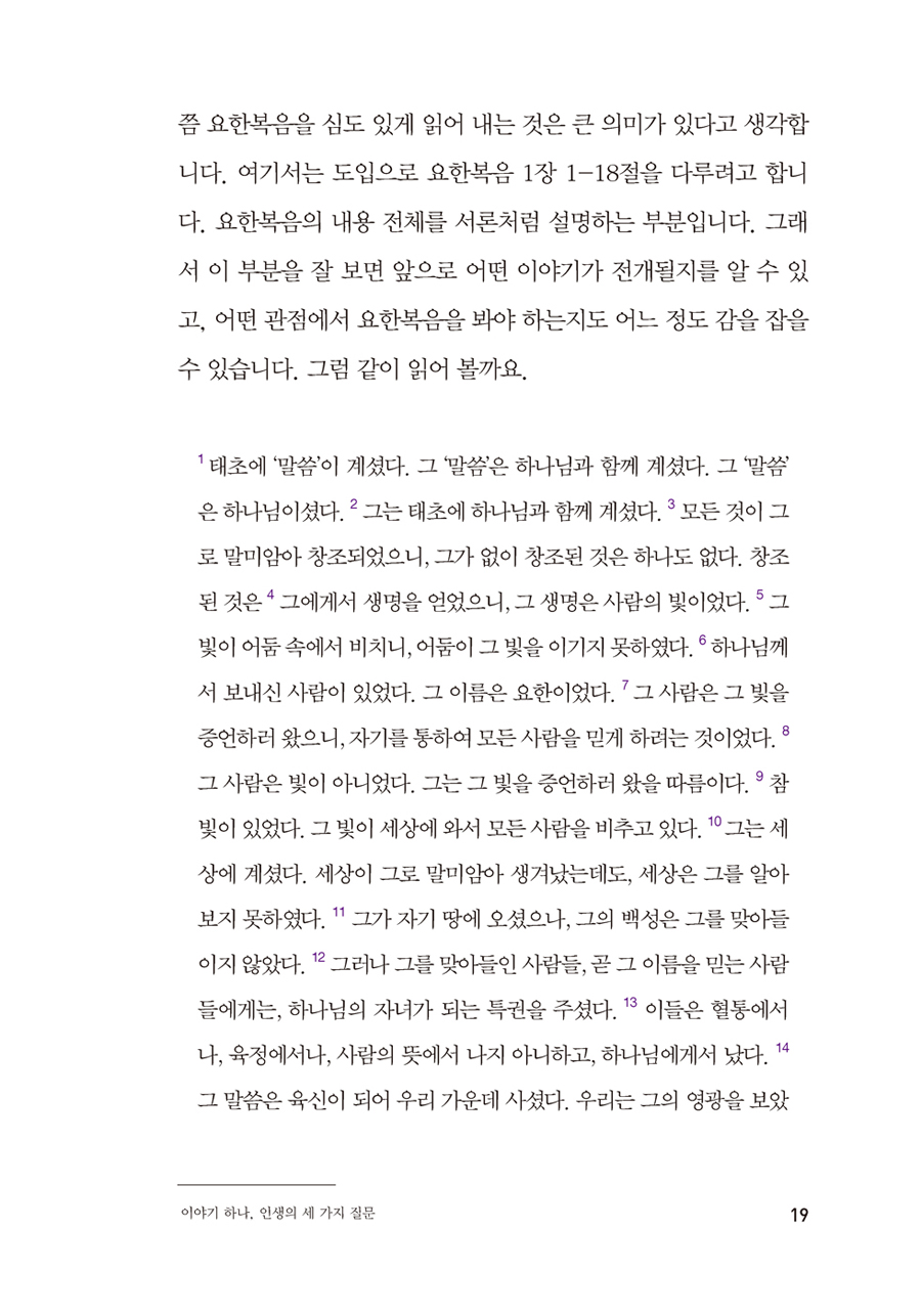 요한복음은 인류가 가진 가장 중요한 고전 중 하나에 손꼽히는 책입니다. 많은 사람이 기독교 신앙을 처음 시작할 때 요한복음을 폅니다. 아주 단순한 질문에 대한 답을 얻으려고 요한복음을 읽기 시작했다가, 읽으면 읽을수록 심오해서 평생 읽고, 마지막까지 거듭거듭 다시 읽게 되는 책이 요한복음이라고 합니다.