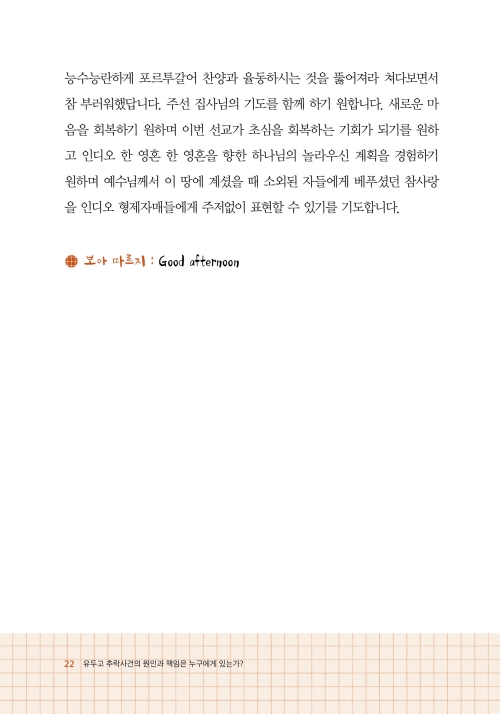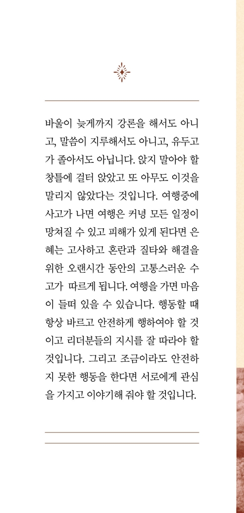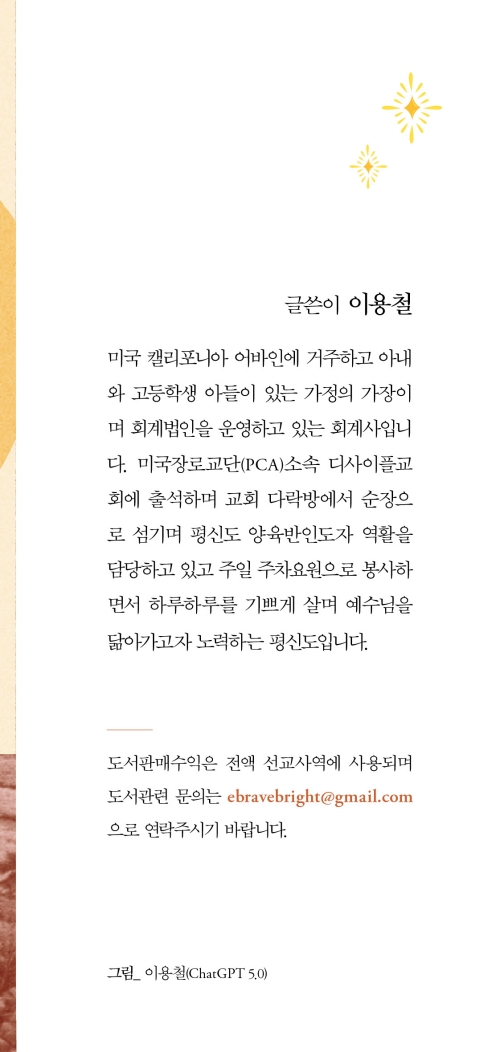 팀에 늦게 합류하게 되어 특별히 맡겨진 임무가 없었기에 내가 해야 할 것이 무엇일까 고민하던 중 가기 전까지 읽어야 하는 사도행전을 묵상하고 아마존에서 만날 영혼들과 사역자들과 선교팀원들을 위한 기도에 매진할 것을 다짐하게 되었습니다. 큐티 형식을 통하여 사도행전을 읽고 묵상하는 가운데 주님께서 은혜를 부어 주셔서 그 감동을 주체할 수 없어 함께 가는 팀원들에게 나누기를 원해 묵상한 사도행전을 매일 단톡방에 공유하게 되었고, 은혜로 사십 개의 글을 완성하게 되었습니다. 말씀 속에서 전도 여행을 가기 전에 준비해야 할 것들과 주의점을 주님께서 말씀해 주십니다. 이것을 전도 여행을 가고자 하는 분들과 공유하기 위해서, 예수님을 닮고 싶은 평범한 평신도가 그 사랑에 못 이겨 그 사랑을 전하고자 갔던 아마존 선교여행을 준비하면서 받은 말씀의 은혜를 계속 기억하며 살아가기 위해 이 책을 내게 되었습니다.