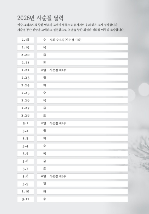 특별히 사순절 40일은 예수님의 고난을 되새기며 부활을 준비하는 기간입니다.