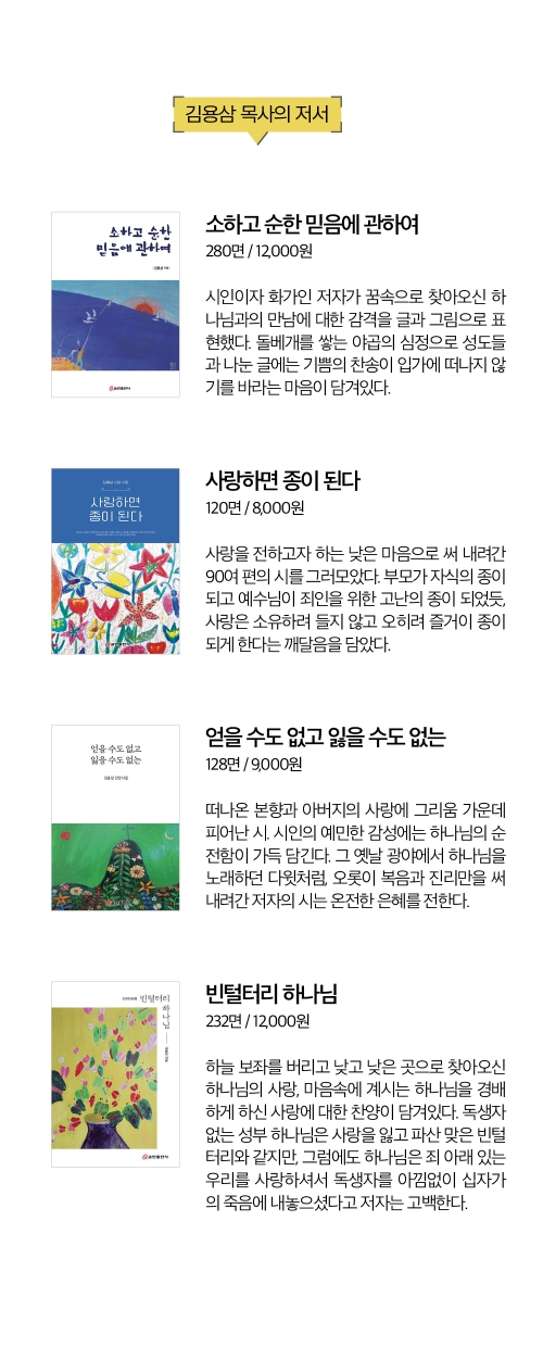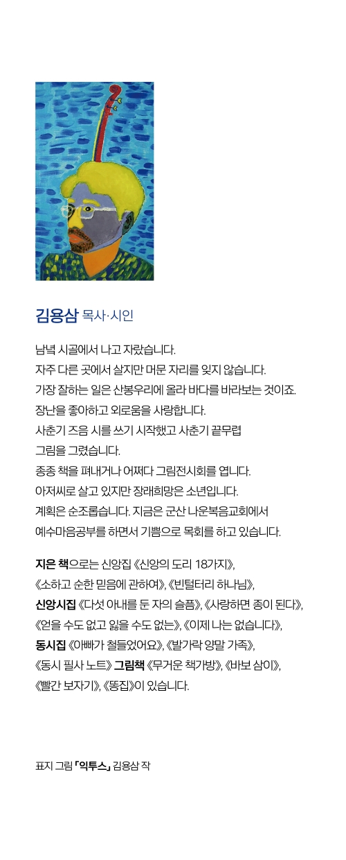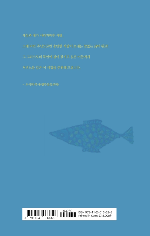 예수님을 믿는 복음 안에서 옛사람을 벗어버리고 "이제 나는 없습니다"라고 말하는 저자의 고백이 담긴 시집. 주님만으로 충만한 저자가 보내는 말 없는 시의 위로가 이 책에 담겨 있다. 소명이란 예수님 안에서 있는 그대로를 받아들이는 것이라는, 오랜 묵상 속에 얻은 저자의 깨달음이 녹아있다. 그리스도의 묵언에 깊이 잠기고 싶은 이들에게 저녁노을 같은 이 시집을 추천한다.
