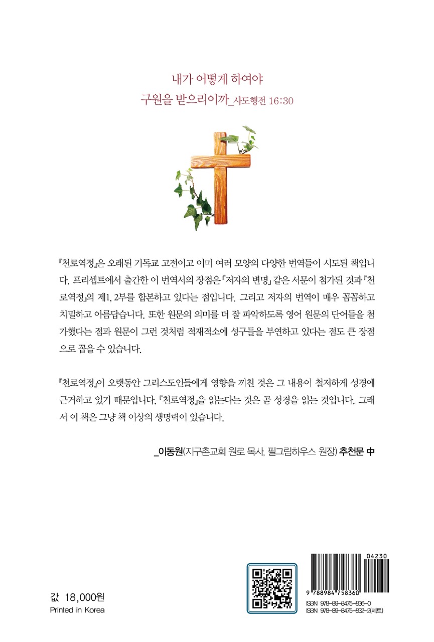 존 번연은 머리와 가슴으로 이 책을 읽기 원했다. 그가 바란 대로 이 책을 통해 고난을 이겨 내고 천국에 입성하는 자신의 모습을 미리 맛보기 바란다.