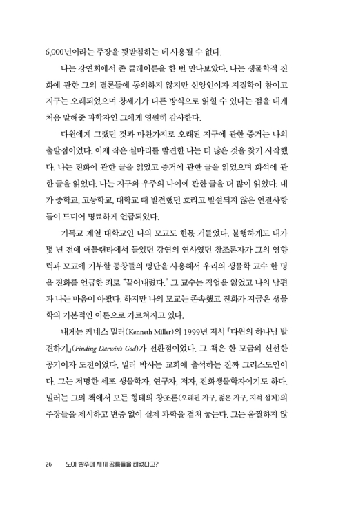 과학에 대한 부정이 신앙의 교의라면 무슨 일이 일어나는가? 우리가 관측할 수 있고 검증할 수 있고 측정할 수 있는 과학적 증거를 부인하면서 어떻게 사람들이 믿음을 요구하는 것들(예수, 부활, 기적 등)에 관해 우리의 말을 믿으리라고 기대할 수 있는가? 우리는 신뢰할 만한가? 나는 진화와 우주의 나이를 받아들이는 헌신되고, 교회에 출석하는 그리스도인이다. 나는 복음주의 교회의 신실한 교인이다. 나는 성경을 진지하게 받아들인다. 나는 사도신경과 니케아 신경의 모든 단어를 믿는다. 그것이 나의 현재의 위치이지만 나의 이야기는 그것에서 시작하지 않는다. 나는 그리스도인이다. 나는 진화와 인간을 포함한 모든 생명이 공통 조상의 후손임을 받아들인다. 나는 우주가 오래되었다는 모든 증거를 받아들인다.