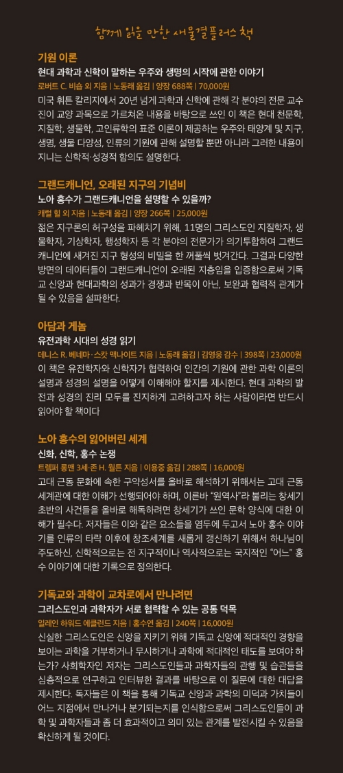 오늘날 우리는 과거 어느 때보다 과학 기술이 눈부시게 발전하는 시대를 살아가고 있다. 그러나 유감스럽게도 교회 안팎에서는 “신앙을 지키려면 과학을 포기해야 한다”라는 이분법적 사고가 여전히 강하게 작동한다. 세속 과학자들은 성경 이야기를 신화로 치부하고, 일부 그리스도인들은 과학이 신앙을 무너뜨릴까 두려워한다. 이 책은 바로 그 오래된 대립의 벽을 허물며, 신앙과 과학이 서로 손을 잡을 수 있음을 보여 준다.