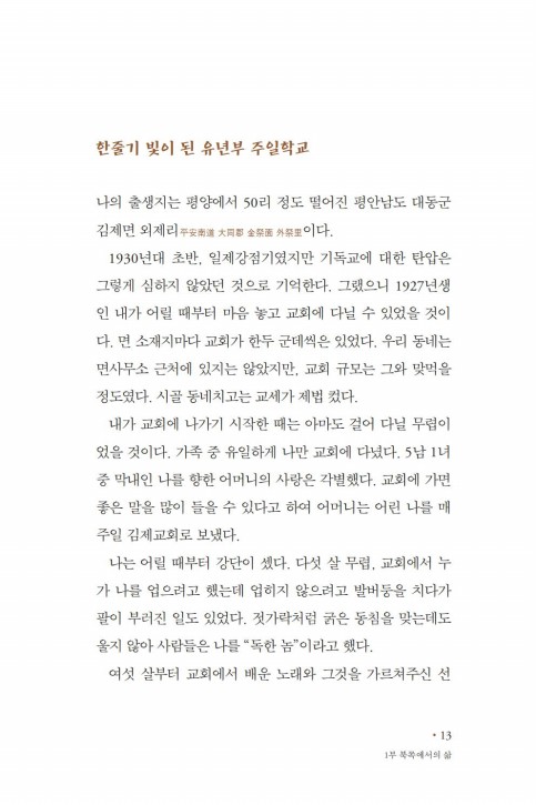 그것은 기적이었다. 피난길에 성경을 가지려고 다시 집으로 향했던 12초로 인해 순경의 눈을 피하게 되어 목숨을 건졌다. 순전히 성경 덕분에 살아난 것이다. 아홉 번의 기적이 연달아 그를 밀어내면서 북한을 탈출해 삶의 기반이 전혀 없던 남한에서 말씀 사역자로서 새로운 인생을 시작했다.