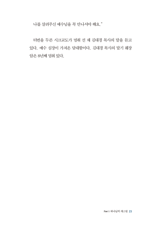 ‘부흥은 생명이 살아나는 것이다!’ 성령 하나님이 마음에 감동을 주신다. 하나님은 시대를 세우기 위해 매 순간 사람을 캐스팅하신다. 하나님은 사랑하는 자녀들을 위해 한순간도 허비하지 않으신다. 81억 인류 중에 반드시 오늘 성령 하나님에게 반응하는 단 한 사람을 찾고 계신다.