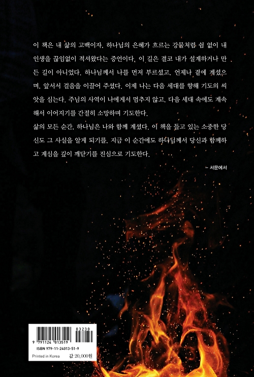 이 책은 저자의 삶의 고백이자 하나님의 은혜로 살아온 삶에 대한 증언이다.
