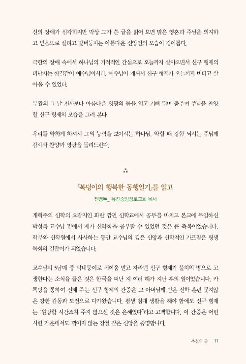 『복덩이의 행복한 동행일기』를 읽고 전병두_ 유진중앙장로교회 목사