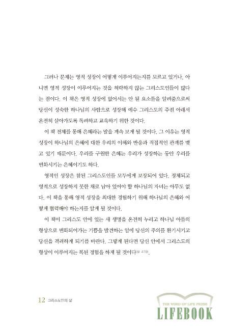 이 책에서는 이러한 영적 성장의 기본 원칙을 중심으로 회심, 성령, 능력, 성경과 같은 필수 요소들을 소개하며 우리가 영적 성장을