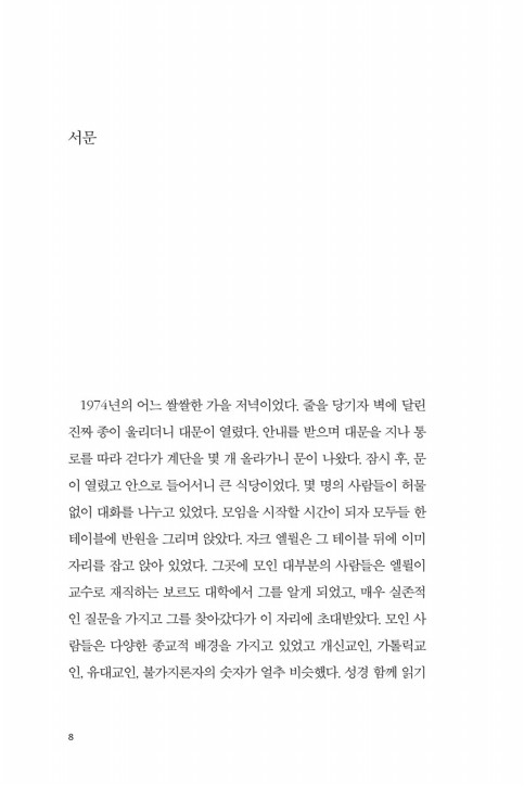 지금은 좀 시들해졌지만 한때 기독교 세계관 운동가들은 "창조-타락-구속"의 도식으로 기독교 신앙을 설명하려는 시도를 많이 했다. 그 도식만큼 기초적이면서도 포괄적으로 기독교 신앙을 설명해 주는 틀을 찾기가 어려웠기 때문이리라. 이 책에서 우리는 기독교 세계관 운동과는 다소 거리가 먼 자크 엘륄을 통해서 다시 그 설명을 접할 수 있다. 엘륄은 창조와 타락과 구속의 이야기를 우리에게 다시 들려줌으로써 우리의 기독교 신앙의 기초를 새롭게 다지게 한다.
