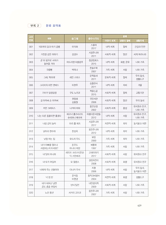 부록 3. 『어린이의 세계와 그림 이야기책』에 따른 분류 체계