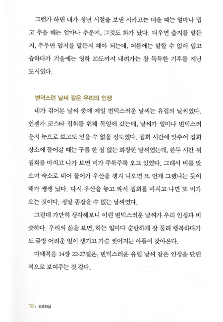 만에 처음 내놓는 책이다. 그는 이 책에서 작은 교회 목사였던 아버지가 금식기도 중 돌아가신 일, 삶의 고난 가운데 결코 목회