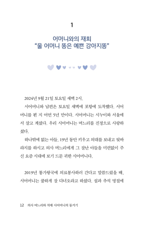 이 책은 한 가정의 분투를 넘어, 한국적 돌봄의 미래를 깊이 비추는 작은 등불입니다. 또한 한국 가족이 오늘은 어떻게 버티고 서로에게 다가가는지를 가장 가까이 현장에서 보여주는 귀한 기록입니다.