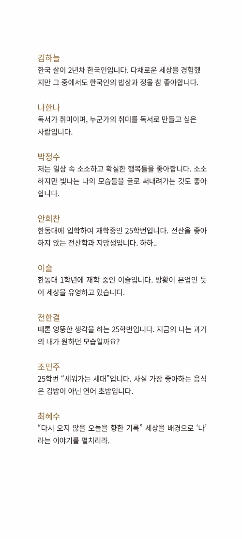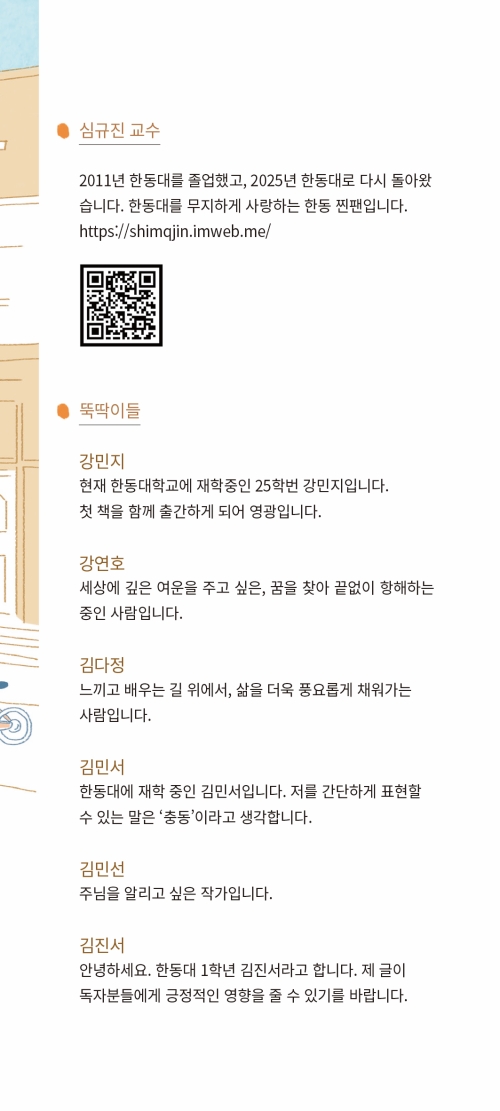 강민지|현재 한동대학교에 재학중인 25학번 강민지입니다. 첫 책을 함께 출간하게 되어 영광입니다.