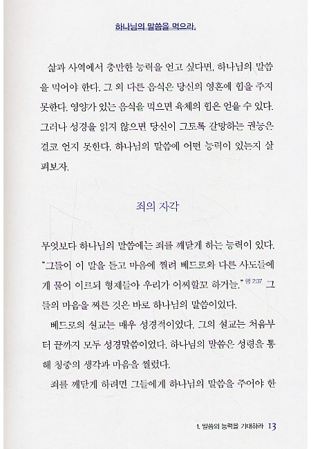 이제 특별한 상황과 장소, 비범한 사람만이 하나님의 권능을 경험한다는 오해를 풀고 신앙의 기본기를 탄탄히 세워 나가자.