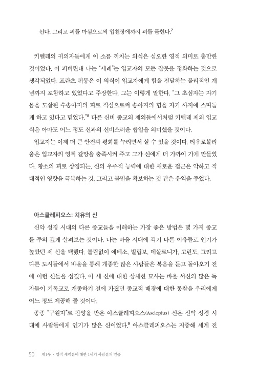 바울 시대에도 그리스도인들은 이와 동일한 문제로 어려움을 겪었다. 새로운 개종자들은 분명히 이런 의문을 가졌을 것이다. 키벨레나 디오니소스의 신비 제의에 계속해서 참가하면 왜 안 되는가? 악한 영들로부터 지켜 달라고 신들이나 천사들에게 호소하는 주문을 담은 부적을 몸에 지니고 다니면 왜 안 되는가? 별의 영들이나 위험한 야생 동물의 영들로부터 보호해 주는 헤카테나 셀레네 여신을 숭배하면 왜 안 되는가? 데메테르의 신비 제의들을 수행하거나 아르테미스나 여호와의 거룩한 날들을 함께 지키면 영성이 더 깊어지는 것이 아닌가? 특별히 골로새 교회 성도들이 이런 문제들을 마음에 품고 있었다는 것은 분명한 사실이다. 에베소에서 내륙으로 약 160킬로미터 떨어진, 그리고 라오디게아에서는 겨우 18킬로미터 떨어진 계곡에 위치한 골로새의 신생 교회는 다른 종교적 전통들의 영향에 대항하느라고 어려움을 겪고 있었다. 혼합주의가 생활의 한 부분으로 받아들여진 영적 환경 속에서 골로새의 그리스도인들은 오직 그리스도 한 분에 대한 자신들의 충정을 손상시킬 유혹에 직면해 있었다. _ 186-187쪽