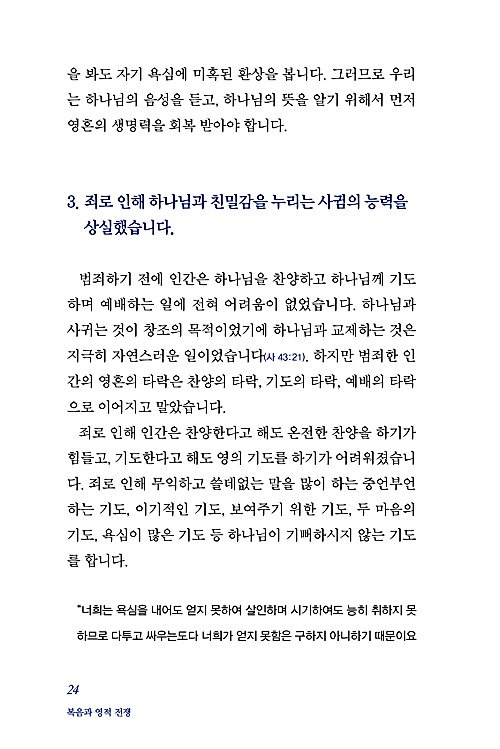 이순희 목사님의 “복음과 영적 전쟁”에 수록된 말씀들은 모두 심도 있는 성경 연구와 이 목사님의 영적 체험을 바탕으로 이루어진 것으로 실제적인 내적치유와 영적 전쟁에서의 승리를 경험하게 하는 말씀입니다. 영적인 갈급함을 해결하지 못해 답답한 그리스도인이라면 반드시 읽고 지침으로 삼아야 하는 말씀입니다. 여러분의 영혼을 깨우치고 생활의 변화를 일으키는 소중한 자산이 될 것이라고 확신하여 발간에 맞추어 자신 있게 추천하는 바입니다.