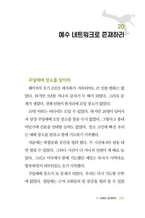 교회는 예수님이 그러셨던 것처럼 격렬히 움직여야 한다. 멈추면 상한다. 생동하는 교회와 성도의 한 전형을 웨이처치를 통해 본다. 이 책은 내게 교회에 대한 설렘과 강한 기대, 그리고 아름다운 추억을 소환한다.