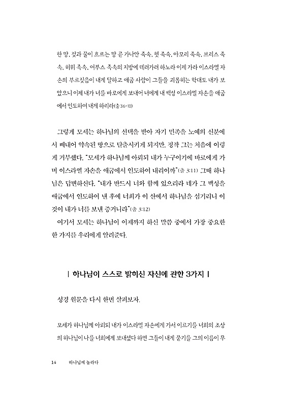 “하나님이 절대적으로 존재하신다는 것은 얼마나 경탄할 일인가. 구약에서 4천 번 이상이나 사용되고 들을 때마다 절대적인 하나님의 존재에 대해 생각하게 만드는 하나님의 이름을 우리에게 주신 것이다. 이것이 우리가 토론할, 길들일 수 없이 거칠고, 가둬둘 수 없이 폭발적이며, 전격적으로 미래를 창조하는 실제들의 첫 번째 진리이다.”