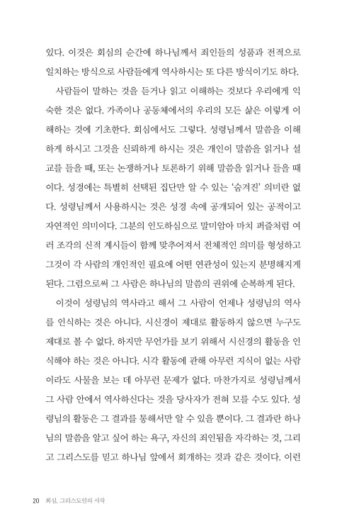 “그리스도인의 회심은 하나님의 주도로 시작한다. 왜냐하면 회심이란 영적 생명이 선물로 주어지는 것이기 때문이다”(25쪽)