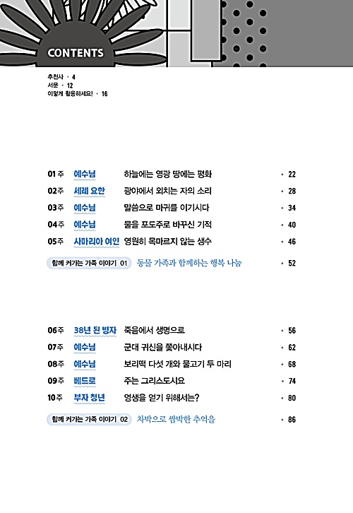 예배의 핵심이라고 할 수 있는 말씀을 온 가족이 재미있고 의미 있게 읽어낼 수 있다면 얼마나 좋을까요? 온 가족이 함께 모여 다양한 표정을 짓고, 여러 감정을 공유하면서 공동체 성경 읽기를 한다면 얼마나 흥미로울까요? 그리고 예배 후 간단한 가족놀이까지 한다면 자녀들이 이 예배를 얼마나 즐거운 마음으로 기다리게 될까요?