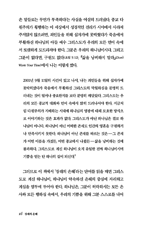 존 파이퍼 목사는 우리가 잃어버린 믿음의 커다란 부분—즉 소망과 만족, 견고함과 고결함, 하나님을 높이고 찬양하는 일—을 거장의 손길로 되살리고 있다. 이 책은 풍성하고 지혜가 넘친다. 읽고 또 읽어야 할 모두의 보물이다.