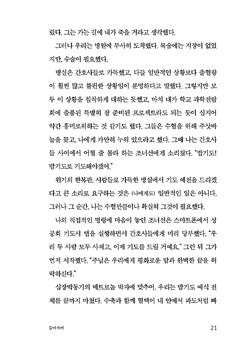 이 책은 아름다운 글과 심도 깊은 신학적 묵상의 보기 드문 조합이다. 만족스럽지 않은 진부하고 쉬운 답 이면에 여전히 존재하는 신앙의 그림, 어렵게 얻은 믿음의 그림을 그린다. 이것은 단지 기도에 관한 책이 아니다. 이 책은 거듭해서 그 자체로 기도가 된다. 결국 이 책은 크고 작은 상실의 한복판에서 그리스도인으로 사는 것이 무엇을 의미하는지에 대한 묵상이다. 강력하게 추천한다.