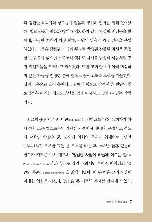청교도들이 믿음 생활에서 중요하게 여겼던 주제들을 빠트리지 않고 다루며