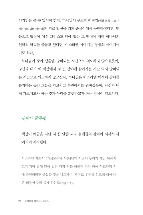 이 책에는 하나님의 사람들이 겪은 엄청난 공허함의 사건이 나온다. 광야에서 만족을 모르던 이스라엘 백성의 갈망, 나오미의 쓰디쓴 상실, 므비보셋이 맞닥뜨린 잔인한 환경, 우물가 여인의 채워지지 않는 갈증, 전도서의 전도자가 경험한 헛됨, 밭에서 일하는 사람과 진주 상인의 거래까지. 그리고 그 과정에서 하나님이 공허함 가운데 가장 좋은 일을 하신다는 사실을 확신하게 한다.
