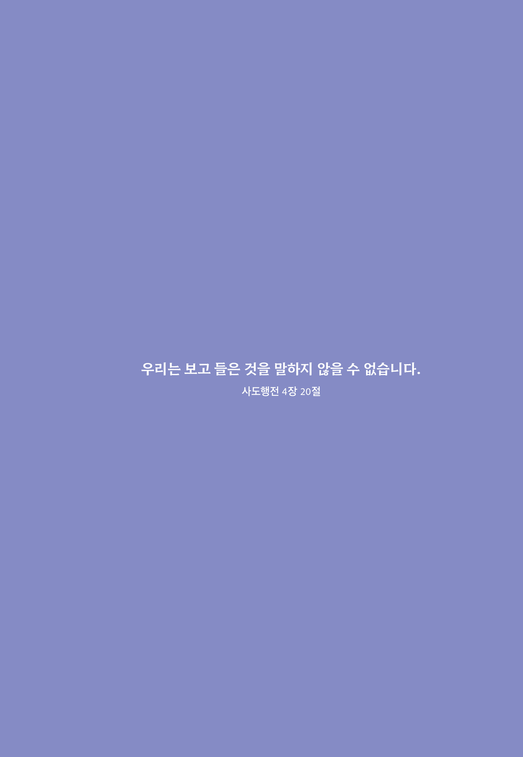그러나 이 작업이 소설 집필 같은 창작이 되지 않도록 극히 조심했다. 기록된 본문을 꼼꼼히 읽고 그 범위 안에서 충분히 합리적으로 거룩한 상상력을 사용했다. 거룩한 상상력과 창작 사이에 명징한 경계선을 그을 수 없는 경우가 많다. 명시적인 본문의 울타리를 벗어나지 않았다. 거룩한 상상력을 포함하여 기록된 본문을 해석하는 작업을 ‘말씀 묵상’이라고 부른다. _ 프롤로그 / 기억과 증언