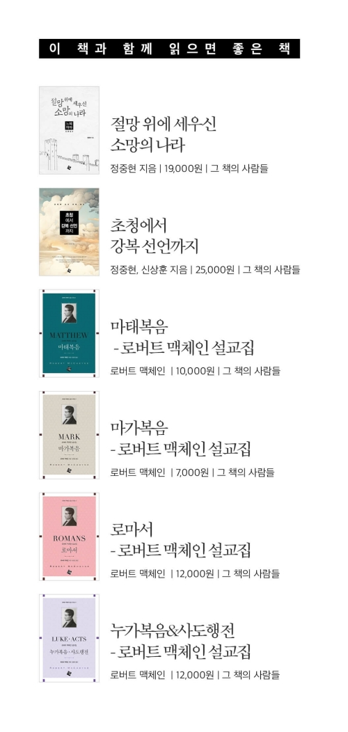이 책이 여러분의 영혼을 점검하고, 회복하게 하는 데 선하게 사용되기를 소망합니다.