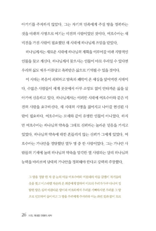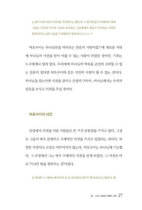 비전을 바라보고 살아가는 사람만이 하나님의 부르심에 합당한 참된 인생의 복을 누리게 되는 것이다.