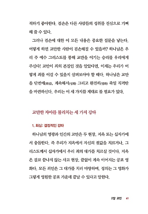 교만에 대한 현장 설명서 / 교만의 반대 이미지 / 교만한 자아를 물리치는 세 가지 강타 / 영광을 바라보고 죄와 싸우기