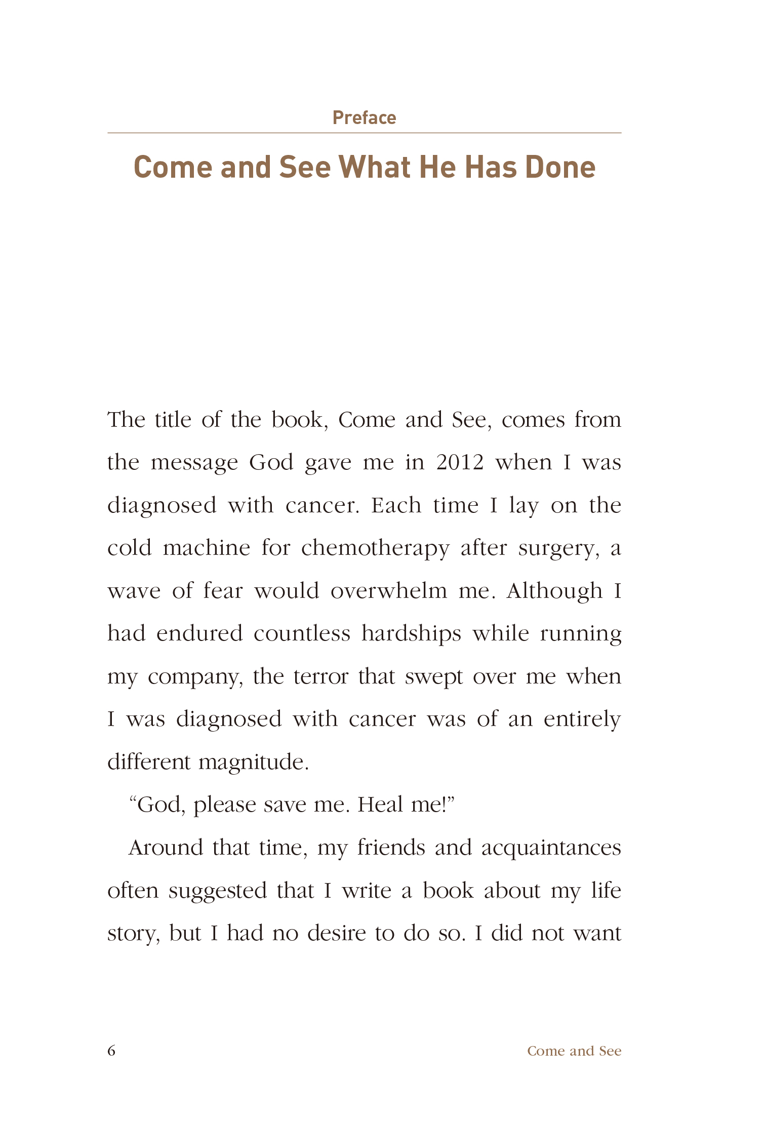 As the title suggests, this book invites readers to "Come and See" God's daily work in their own lives.