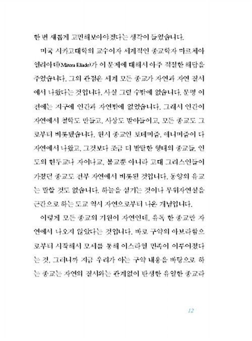 기독교는 어떤 종교일까요? 기독교 구약의 줄기가 되는 내용은 코란과 똑같지만, 예수님께서 오셔서 신약이 시작된 데서부터 그 줄기가 갈라집니다. 말하자면 예수님은 구약이라는 계란 속에서 병아리처럼 그 껍질을 깨고 나온 것입니다. 이슬람교는 아직도 계란 속에 있고요. 계란을 깨고 나와서 출발한 게 우리 기독교라는 점에서 두 가지가 확실해집니다. 첫째는 자연종교가 아닌 유일신을 믿는 종교로서 구약과 신약을 토대로 하고 있다는 점, 둘째는 구약의 연장이 아닌 인류와 세계 종교로 개편된 예수님 이후의 종교라는 점입니다. 이 두 가지는 예수님 이전 종교와 확실히 구별되어야 합니다. 그것을 구별하지 않고 그저 종교라는 이름으로 다 같은 것으로 취급하면 종교가 인류에게 행복을 주는 것이 아니라 오히려 폐단이 될 것입니다.