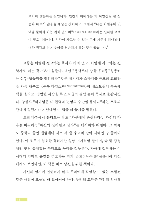 당신의 하나님이 작으면 그분의 성품과 속성과 말씀이 당신에게는 별로 의미가 없다. 그러나 그분이 크시면 세상이 완전히 달라진다. 저자는 바로 이 크신 하나님을 우리에게 보여 준다.