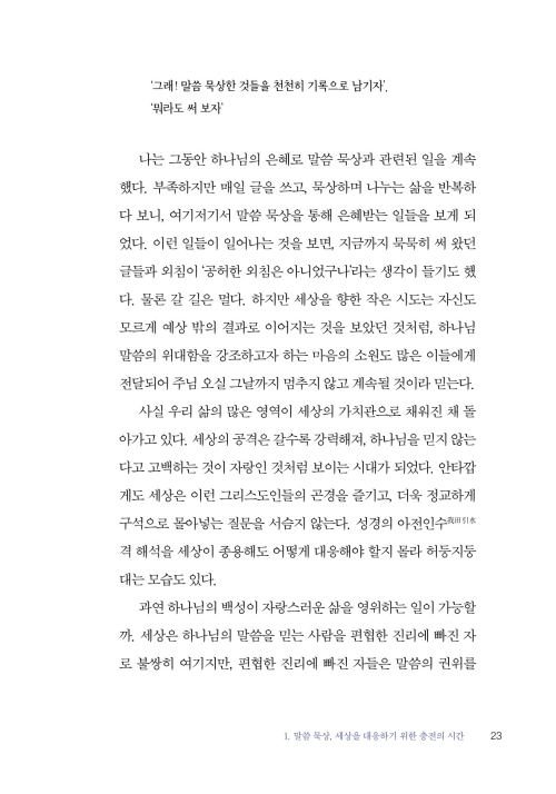 p. 24~25_"1. 말씀 묵상, 세상을 대응하기 위한 충전의 시간" 중에서