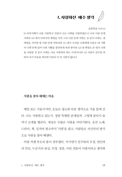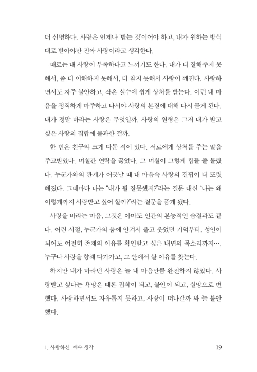어릴 적엔 부모의 미소면 충분했다. 조금씩 성장할수록 친구들과의 관계, 직장에서 성과와 지위, 교회에서 신실하다는 평가와 인정을 통해 사랑받으려 했다. 아무리 사랑받고 싶어 애써도, 어딘가에선 늘 부족하고 초라하다.