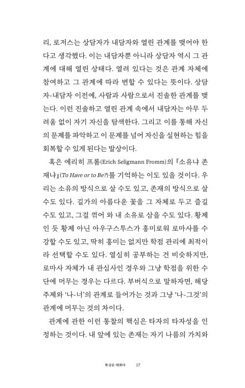 묵상은 나로 하나님의 성품을 닮아 가게 하되, 자신의 한계를 인정하며 사는 지혜로 이끌어 준다. 끝없이 움직이며 일하는 사람(human doing)이 아닌 존재하는 사람(hu-man being)으로 살게 되었을 때 비로소 내 인생에서 첫 안식을 누릴 수 있었다. 나 자신과 화해하고, 나 자신과 함께하며, 나의 존재 자체에 주목할 수 있었다. 나의 실체를 있는 그대로 인정하고 수용함으로 비로소 새롭게 채울 수 있었다.