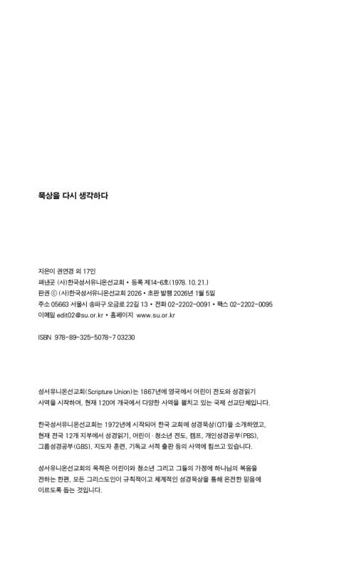 안녕하세요. 저희 성서유니온은 1972년 한국 설립과 동시에 큐티(묵상)라는 개념을 처음 한국 교회에 소개하고, 50년간 「매일성경」을 통해 묵상 운동을 펼쳐 왔습니다. 다음 50년을 준비하며 묵상의 본질을 되새기고 새로운 방향과 기준을 모색하기 위해 아래 제목의 글을 의뢰드립니다.