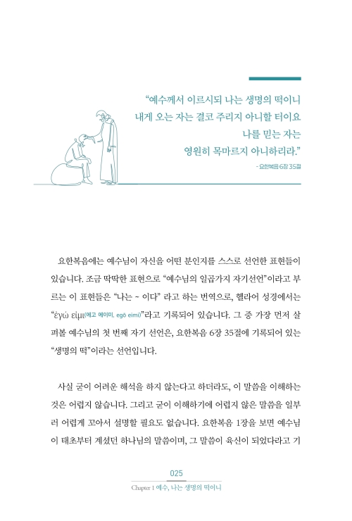 책을 읽다 보면 마음에 번쩍 불이 들어오는 듯한 느낌을 받는 책이 있습니다. 오랜시간 막혀 있던 답답한 한 구석을 뻥 뚫어주는 책이 있습니다. 박형용 목사님의 책이 그렇습니다. 쉽게 지나치기 쉬웠던 예수님의 일곱 가지 “I am” 소개를 이렇게 이해하기 쉽게 기록한 책은 만나 보기 쉽지 않을 것입니다. 이 책은 예수님을 알지 못하고 믿지 않는 사람을 비롯하여 오랜 시간 교회에서 형식적인 종교 생활을 해 온 사람들에게 이르기까지 예수님을 바르게 알고, 배우고, 만날 수 있는 훌륭한 기회를 제공할 것입니다. 생명의 양식이신 예수님을 먹고, 빛되신 예수님을 통해 어둠을 밝히며, 양의 문이신 예수님의 품에 안기고, 선한 목자되신 예수님을 만나고, 부활이요 생명이신 예수님 안에 거하며, 길이요, 진리요, 생명되신 예수님만을 의지하고, 참 포도나무이신 예수님께 딱 달라붙어 마침내 풍성한 열매를 맺기 원하는 모든 분들은 이 책을 통해 큰 유익을 얻게 될 것입니다. 진정 예수님을 알기 원하시는 모든 분들에게 기쁜 마음으로 일독을 권합니다.