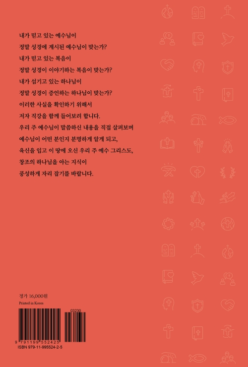 바로 이 일을 위해서 우리는 저자 직강을 들어 보려고 합니다. 우리 주 예수님의 말씀을 직접 들어보며 예수님이 어떤 분인지 분명하게 알게 되고, 육신을 입고 이 땅에 오신 우리 주 예수 그리스도, 창조의 하나님을 아는 지식이 풍성하게 자리 잡기를 바랍니다. 우리가 예수님을 믿는 것과 아는 일에 하나가 되어, 우리의 간증이 성경의 예수님만을 전하는 자리가 될 수 있기를 축복합니다.
